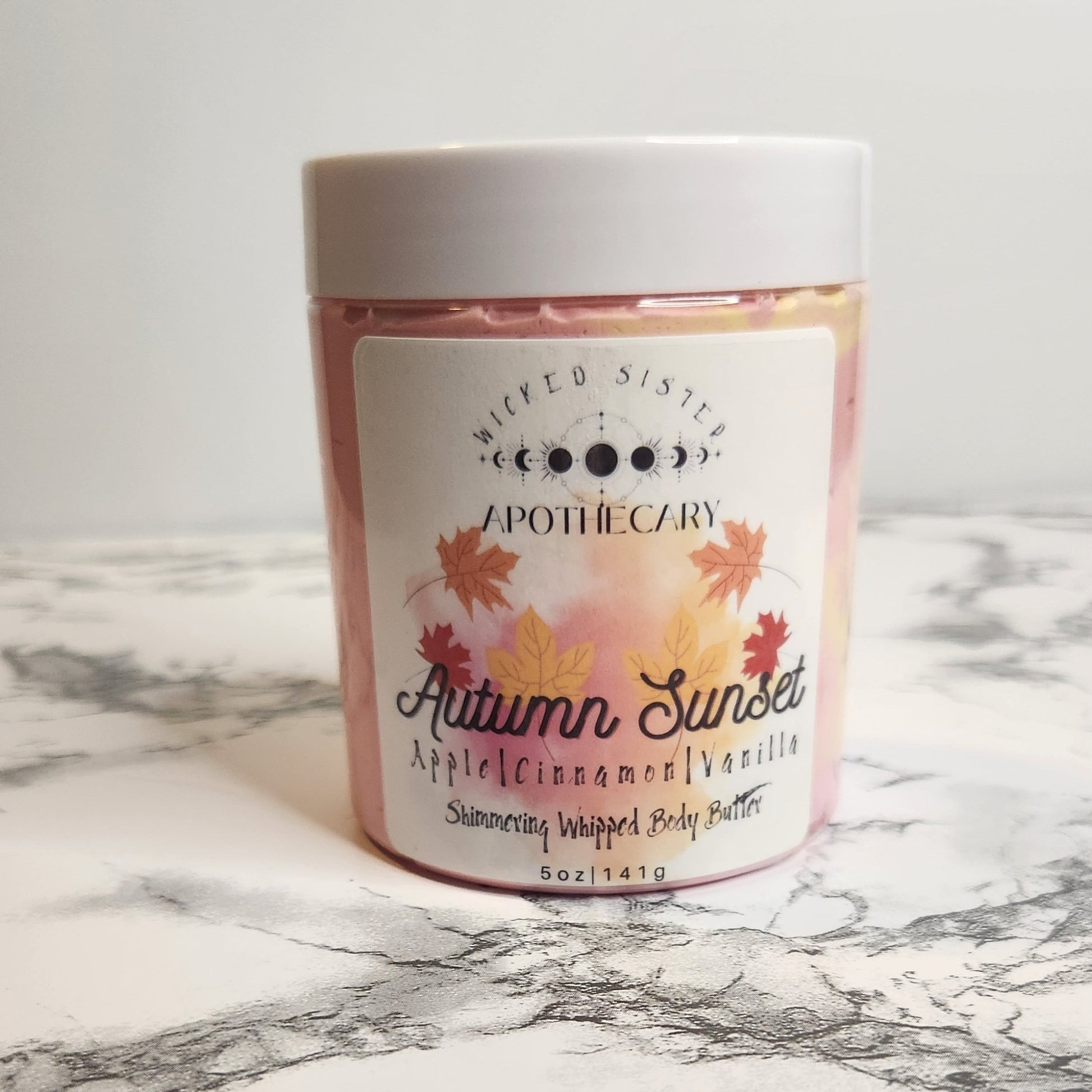 Autumn Sunset Shimmering Body Butter. Apple, cinnamon and vanilla scent notes.