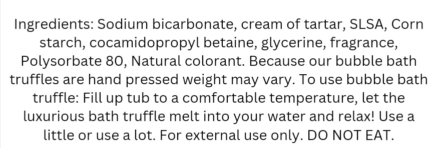 Fill up tub to a comfortable temperature, let the luxurious bath truffle melt into your water and relax! Use a little or use a lot.