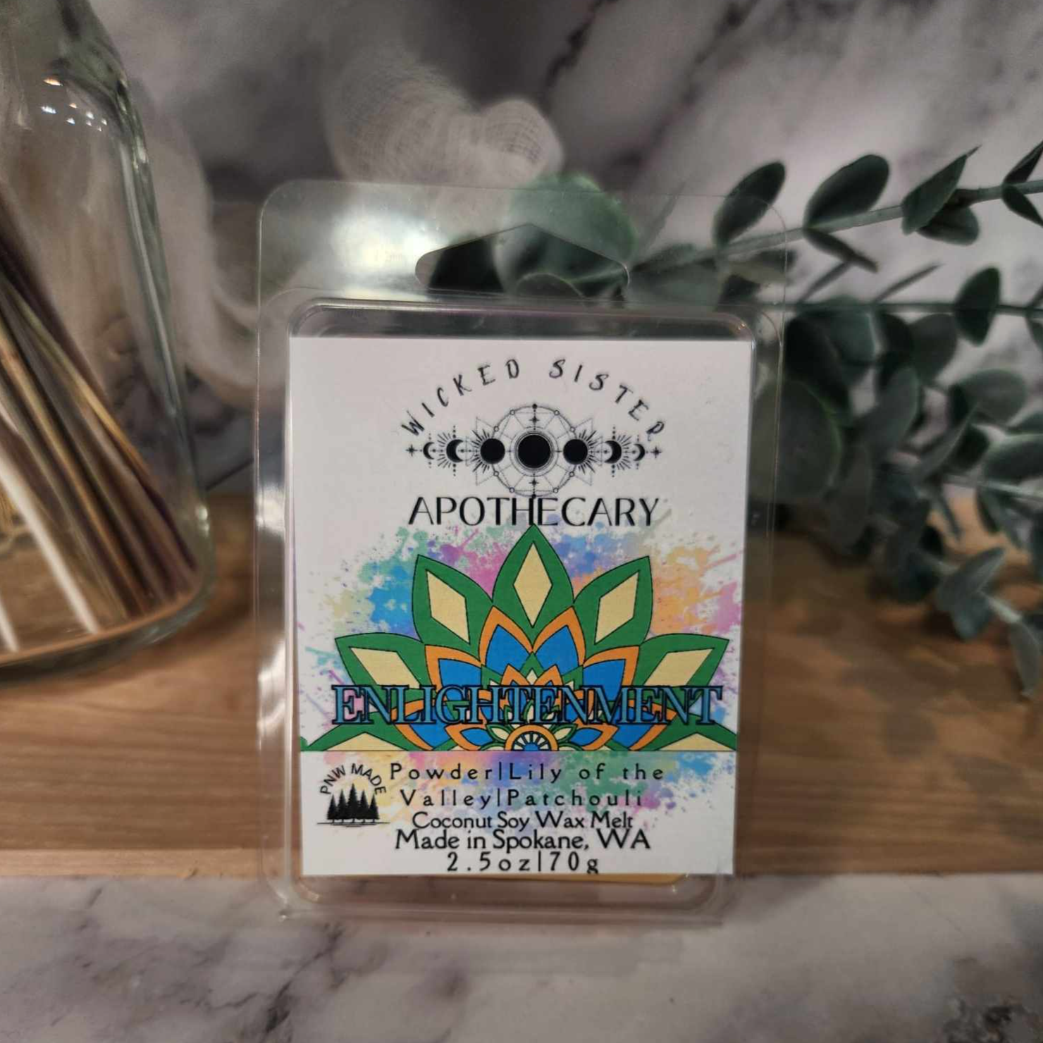 Enlightenment coconut soy wax melt. Transform your home into a tranquil paradise with the soft floral scents of lily of the valley and refreshing touches of patchouli. Our Enlightenment coconut soy wax candle offers a unique blend of fragrances, carefully crafted to create a calming and rejuvenating atmosphere in any room.