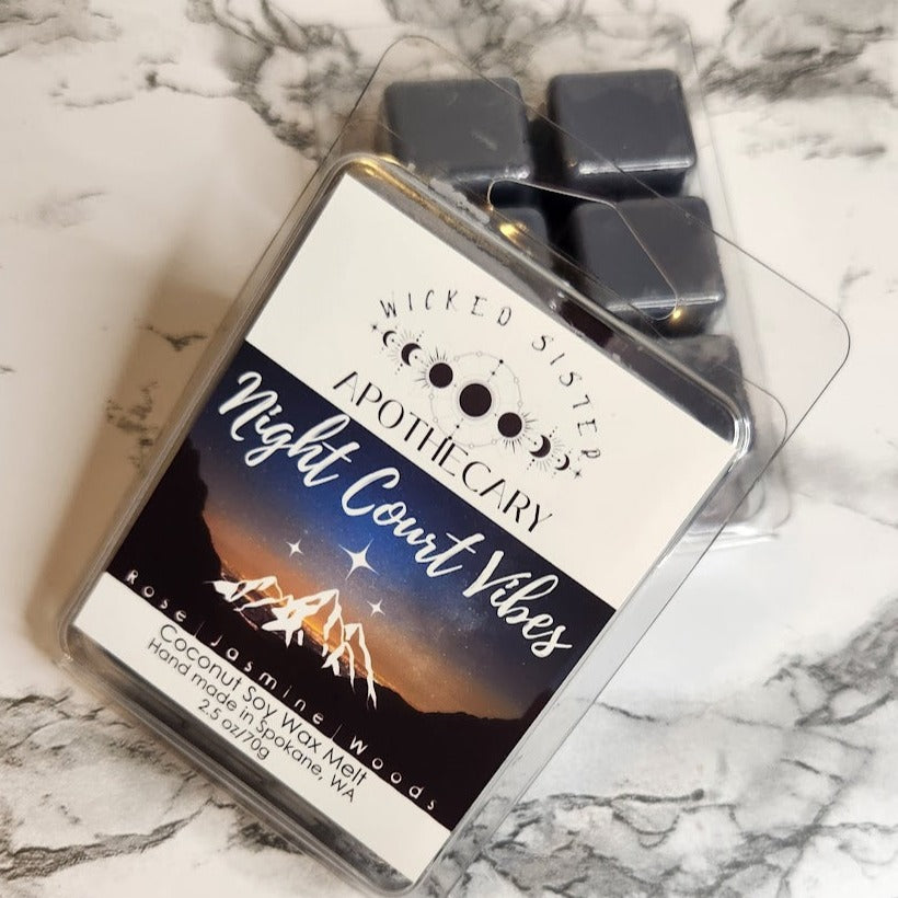 Dive into a world of fantasy and romance with this night court vibes candle. Scent notes include rose, jasmine and woods.