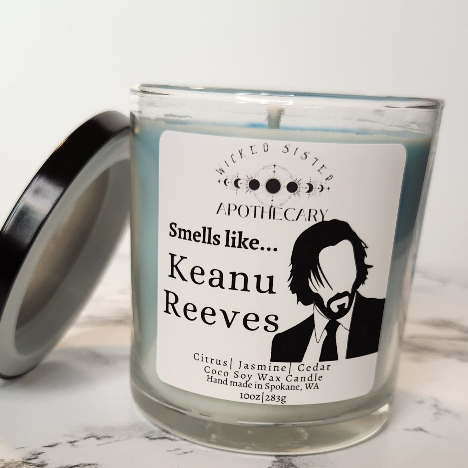 Smells like Keanu Reeves coconut soy beeswax candle. Citrus, jasmine and cedar scent notes.